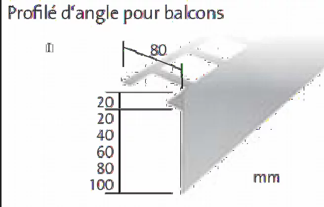Durabal BO 20-80 Alu - 3m Profil d'angle pour balcon ou terrasse et/ou sur plot
