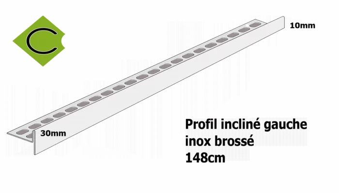 Profilé de douche incliné Inox brossé gauche 148cm