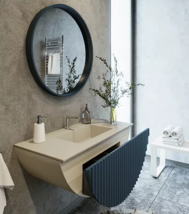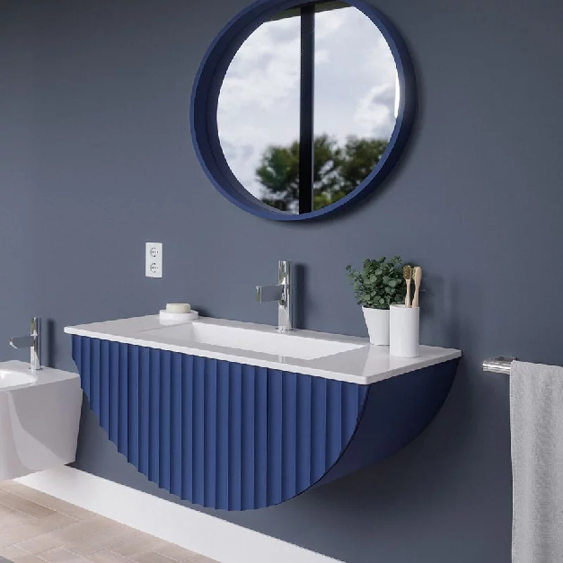 Ensemble Caps Midnight blue mat + vasque solid surface Silk 80cm