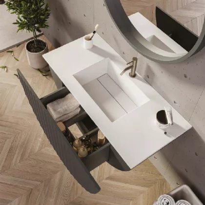 Ensemble Caps Midnight Blue mat + vasque solid surface Silk 100cm