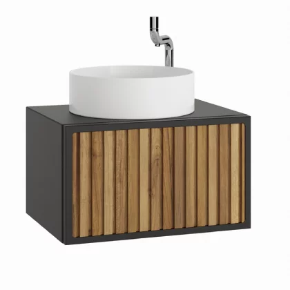 Ensemble meuble ORIENT 60cm Anthracite-teck + vasque céramique NEVADA