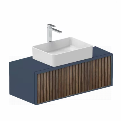 Ensemble meuble ORIENT 100cm bleu-walnut + vasque céramique NEVADA