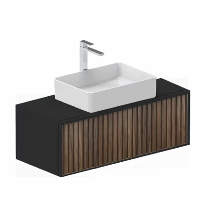 Ensemble meuble ORIENT 100cm Noir-walnut + vasque céramique NEVADA