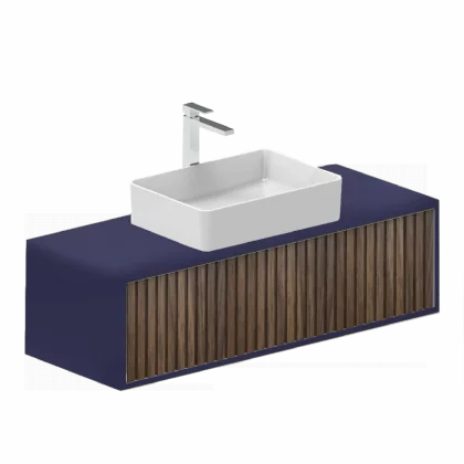 Ensemble meuble ORIENT 120cm bleu-walnut + vasque céramique TUNDRA