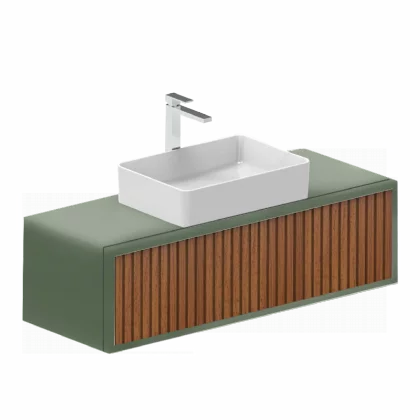 Ensemble meuble ORIENT 120cm Vert Olive-teck + vasque céramique TUNDRA