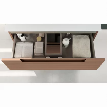 Tiroirs: Charnières amorties - Sortie amortie - Sortie totale -tiroir mélaminé finition textile