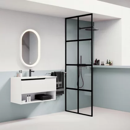 Ensemble composé d'un meuble ELEVEN avec niche 100x45x55cm, une vasque céramique centrée FLAT encastrée