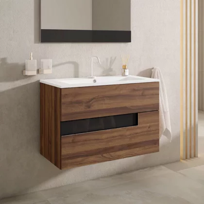 Ensemble meuble VISION + vasque céramique FLAT - 80cm Valenti/Noir