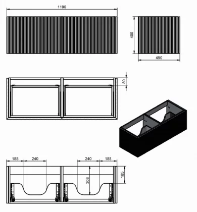 Ensemble composé d'un meuble BAR 120x40x45cm, une double vasque FLAT encastrée