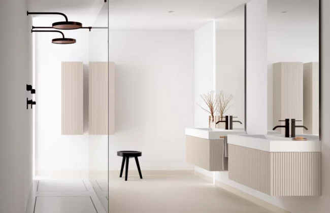 Ensemble composé d'un meuble BAR 120x40x45cm, une double vasque FLAT encastrée
