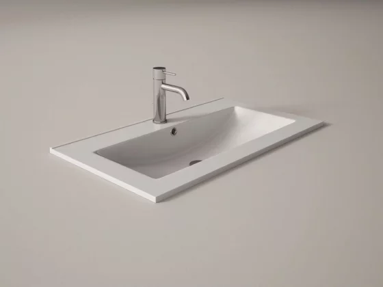 Ensemble composé d'un meuble BAR 100x40x45cm, une vasque FLAT centrée et encastrée