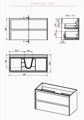 Ensemble composé d'un meuble INDICO 100x50x45cm, une vasque FLAT encastrée