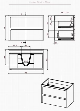 Ensemble composé d'un meuble INDICO 80x50x45cm, une vasque FLAT encastrée