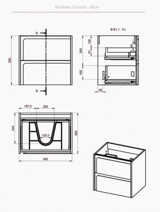 Ensemble composé d'un meuble INDICO 60x50x45cm, une vasque FLAT encastrée