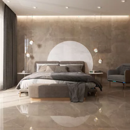 Avec son format rectangulaire de 60 x 120 cm, ce carrelage est parfait pour créer une sensation d’espace et de continuité, que ce soit dans un salon, une salle de bain ou une cuisine. Sa finition poli brillant reflète la lumière, donnant ainsi plus de luminosité aux pièces.
