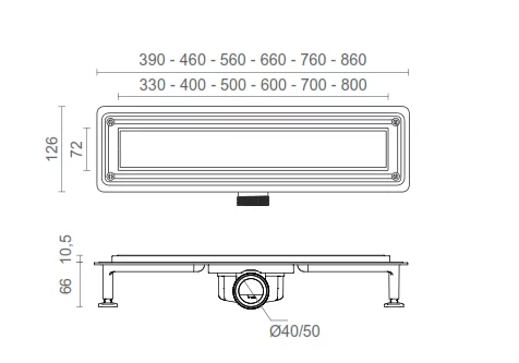 • Disponible en longueurs de 330, 400, 500, 600, 700 et 800 mm, avec une largeur de 60 mm